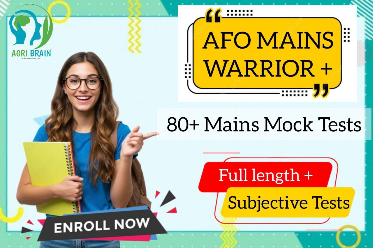 "Built for the Final Battle" AFO MAINS WARRIOR+ is an advanced, mains-exclusive test program designed for aspirants who have cleared prelims and are now hunting the final selection. This course is not about basics. It’s about precision, depth, pressure, and performance — exactly what IBPS AFO Mains demands. What Makes WARRIOR+ Different ✔ 80+ Full-Length Mains Mock Tests And Subjective ✔ Strictly aligned with IBPS AFO Mains pattern ✔ Designed to push you beyond comfort and build exam dominance Full-Length Objective Test-80+ Complete AFO / NABARD syllabus coverage Balanced mix of: Static Agriculture Current Affairs Most Expected Type-MCQs PIB Trends Govt Schemes Agriculture budget & policy updates Government initiatives Subjective Mocks Topic Wise Overall Test Design ✔ Topic-wise → Subject-wise → Full-Length progression ✔ Exam-level difficulty with increasing intensity ✔ Designed to eliminate exam surprises ✔ Ideal for Mains focused aspirants Support- 9399154206